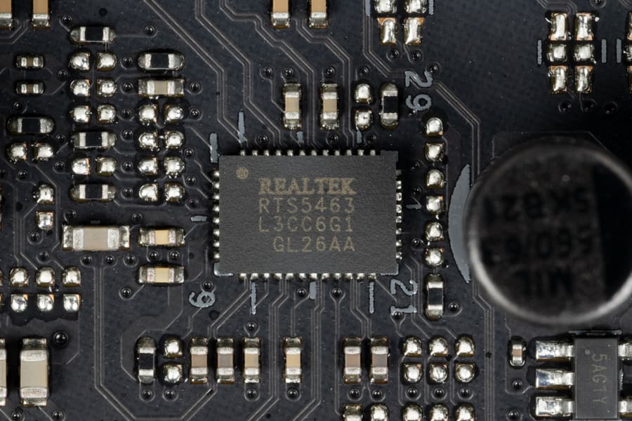 - 6 портов USB 3.2 Gen1: 4 реализованы через контроллер ASMedia ASM1074 (на него потрачена 1 линия PCIe 3.0) и представлены 4 портами Type-A на задней панели (синего цвета); еще 2 реализованы через второй Realtek RTS5463 (на него потрачена 1 линия USB 2.0) и представлены внутренним разъемом на материнской плате на 2 порта;