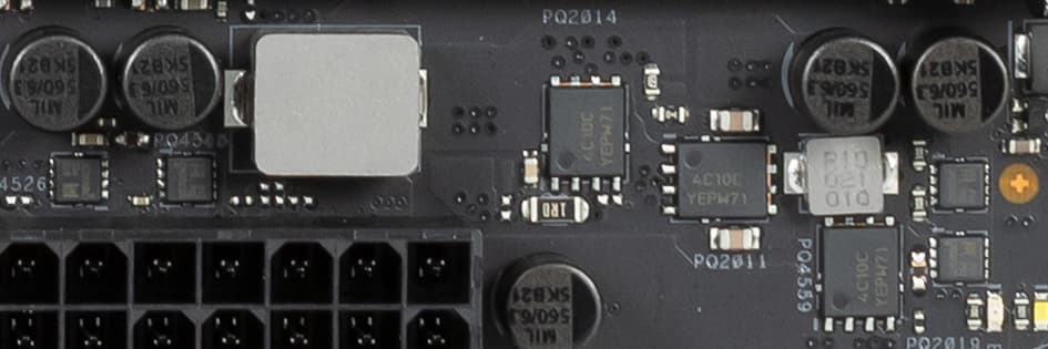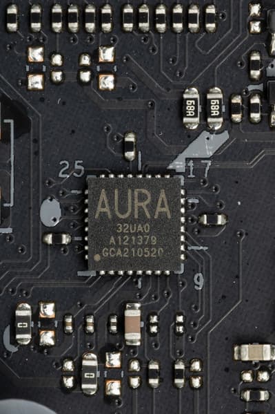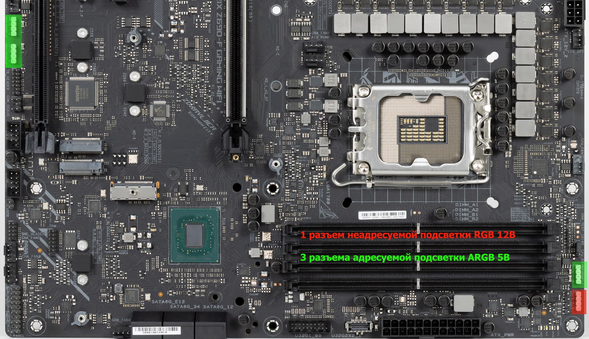 Система питания процессора способна обеспечить работу любых совместимых процессоров с запасом на разгон. Плата имеет грамотную систему охлаждения каждого потенциально греющегося элемента, включая накопители в слотах M.2 (термопрокладки для охлаждения накопителей есть с обеих сторон). Сетевые возможности хорошие: быстрый проводной контроллер 2,5 Гбит/с и один самый современный беспроводной. В числе плюсов платы можно упомянуть неплохую подсветку, включая широкие возможности для подключения дополнительных RGB-устройств. Отметим и улучшенный аудиокодек Realtek ALC4080.