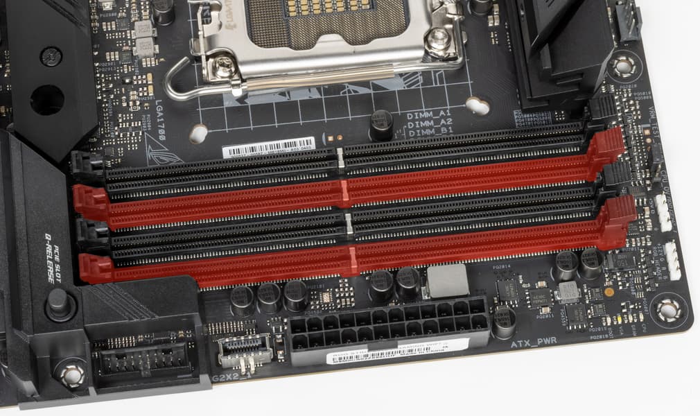 Для установки модулей памяти на плате Asus имеется четыре DIMM-слота (для работы памяти в Dual Channel в случае использования всего 2 модулей их следует устанавливать в А2 и B2. Плата поддерживает небуферизованную память DDR5 (non-EСС), а максимальный объем памяти составляет 128 ГБ. Разумеется, поддерживаются профили XMP.