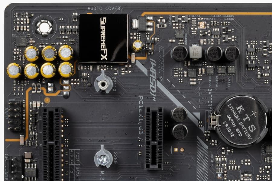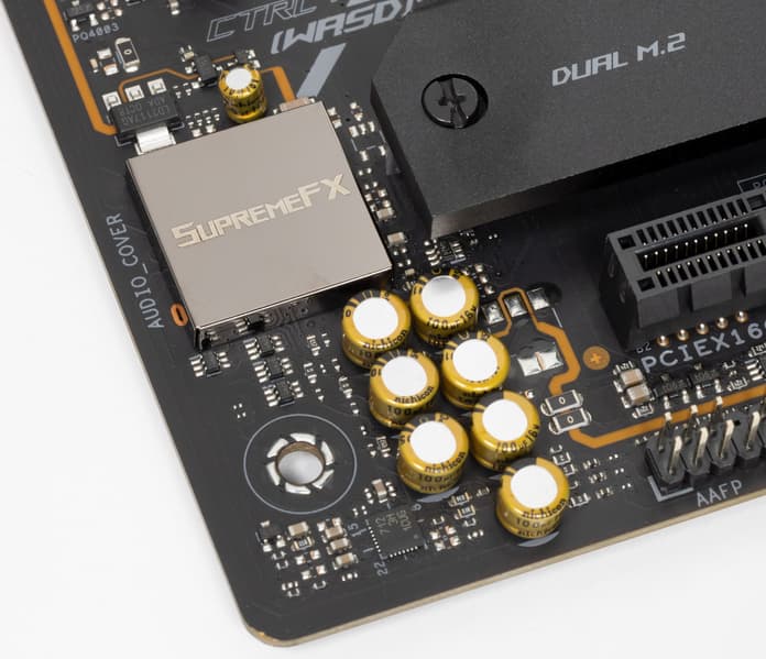 В традициях Asus накрывать микросхему кодека металлическим колпачком с собственным названием аудиоподсистемы SupremeFX.
