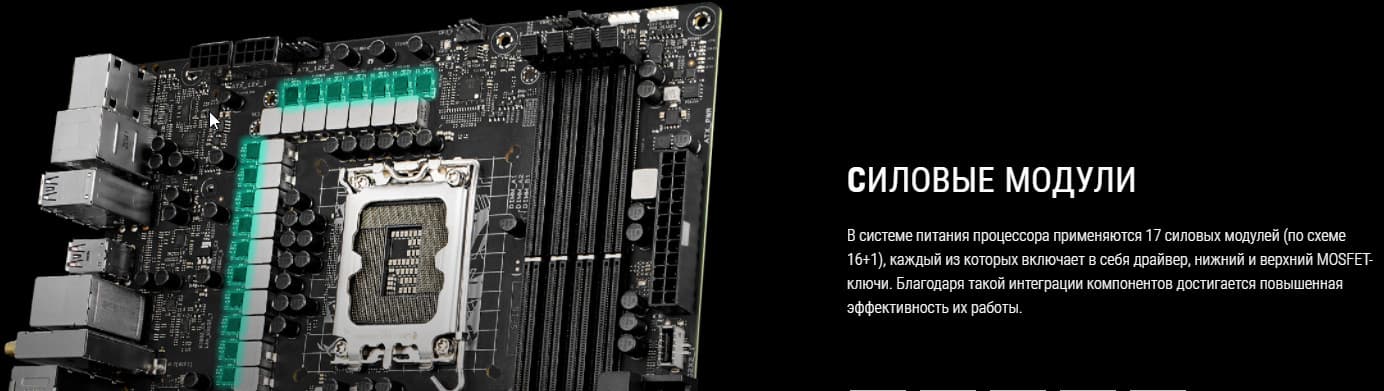 Схема питания процессора выполнена по схеме 16+1 (всего 17 фаз, 16 на VCore и 1 на интегрированное графическое ядро).