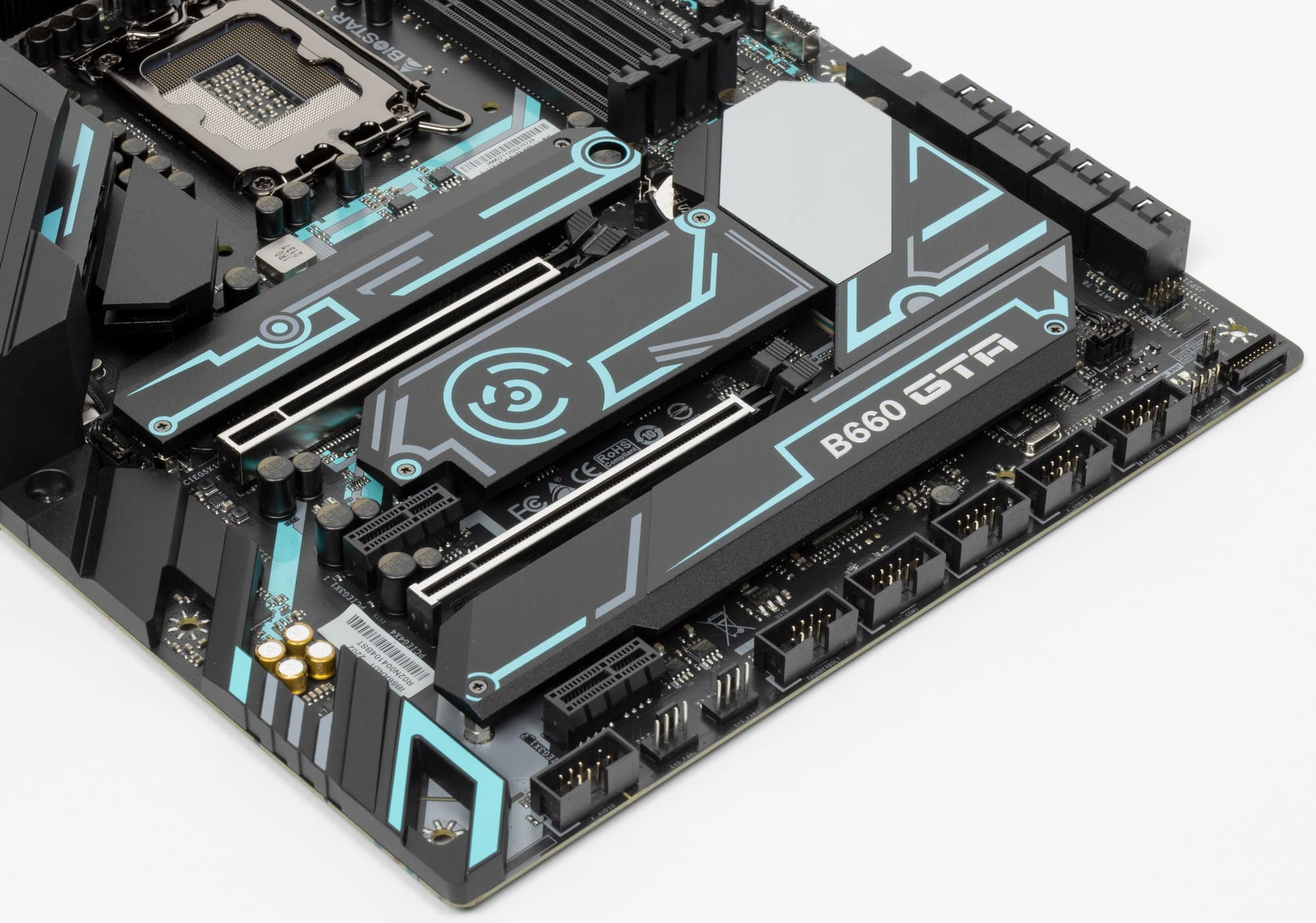 Второй и третий по счету слоты M.2 получают данные от чипсета B660, при этом второй поддерживают PCIe 4.0, третий — PCIe 3.0. Первый M.2 получает данные от CPU (PCIe 4.0).