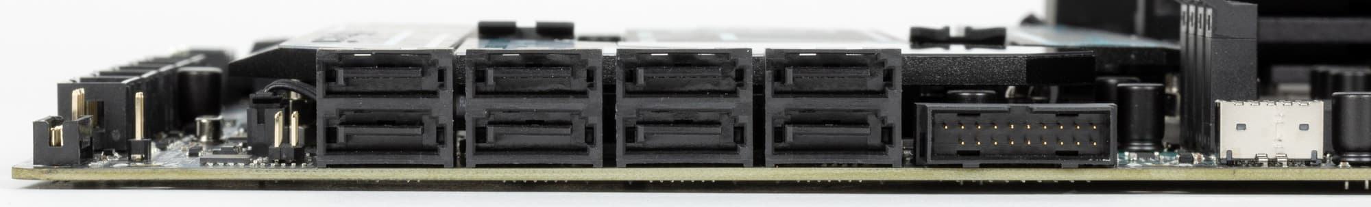4 слота SATA реализованы через чипсет B660 и поддерживают создание RAID. Остальные 4 порта SATA 5/6/7/8 реализованы через ASM1064 от ASMedia (RAID не поддерживается).