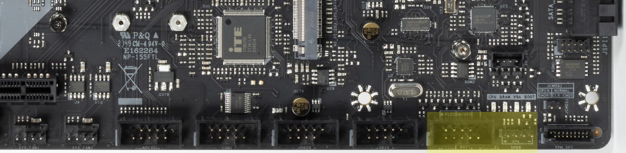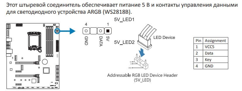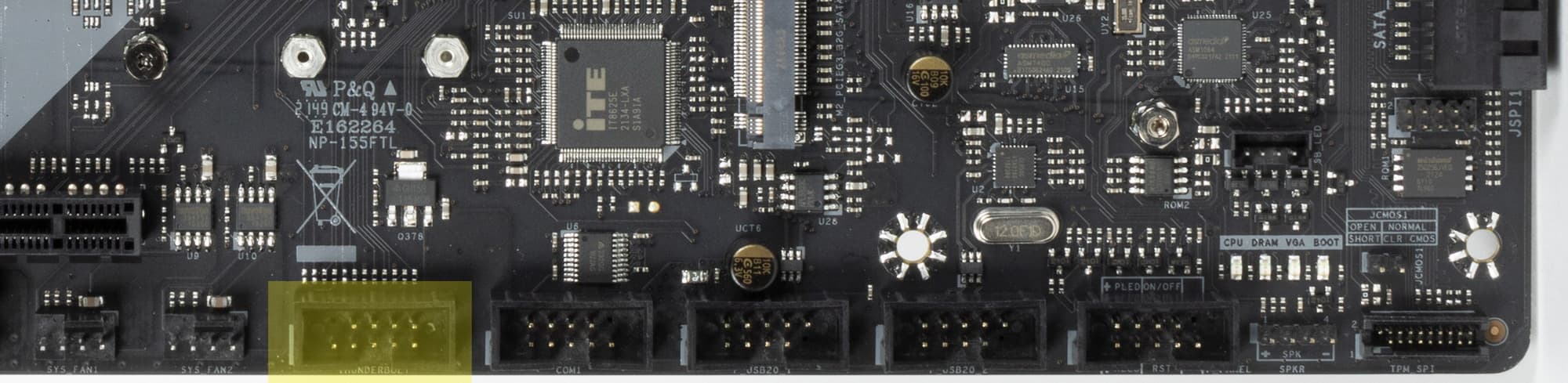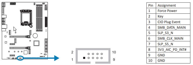 | Прочие внутренние элементы | 24-контактный разъем питания ATX 1 8-контактный разъем питания EPS12V 1 4-контактный разъем питания EPS12V 1 слот M.2 (E-key), под адаптер беспроводных сетей (не занят) 1 разъем для подключения порта USB 3.2 Gen2 Type-C 1 разъем для подключения 2 портов USB 3.2 Gen1 2 разъема 4 портов USB 2.0 5 разъемов для подключения 4-контактных вентиляторов и помп ЖСО 3 разъема для подключения адаптеров подсветки (1 разъем неадресуемой RGB-ленты, 2 разъема адресуемой ARGB-ленты) 1 разъем для дискретной карты Intel Thunderbolt 1 разъем для TPM 1 разъем для подключения адаптера управления с передней панели корпуса 1 разъем COM-port |