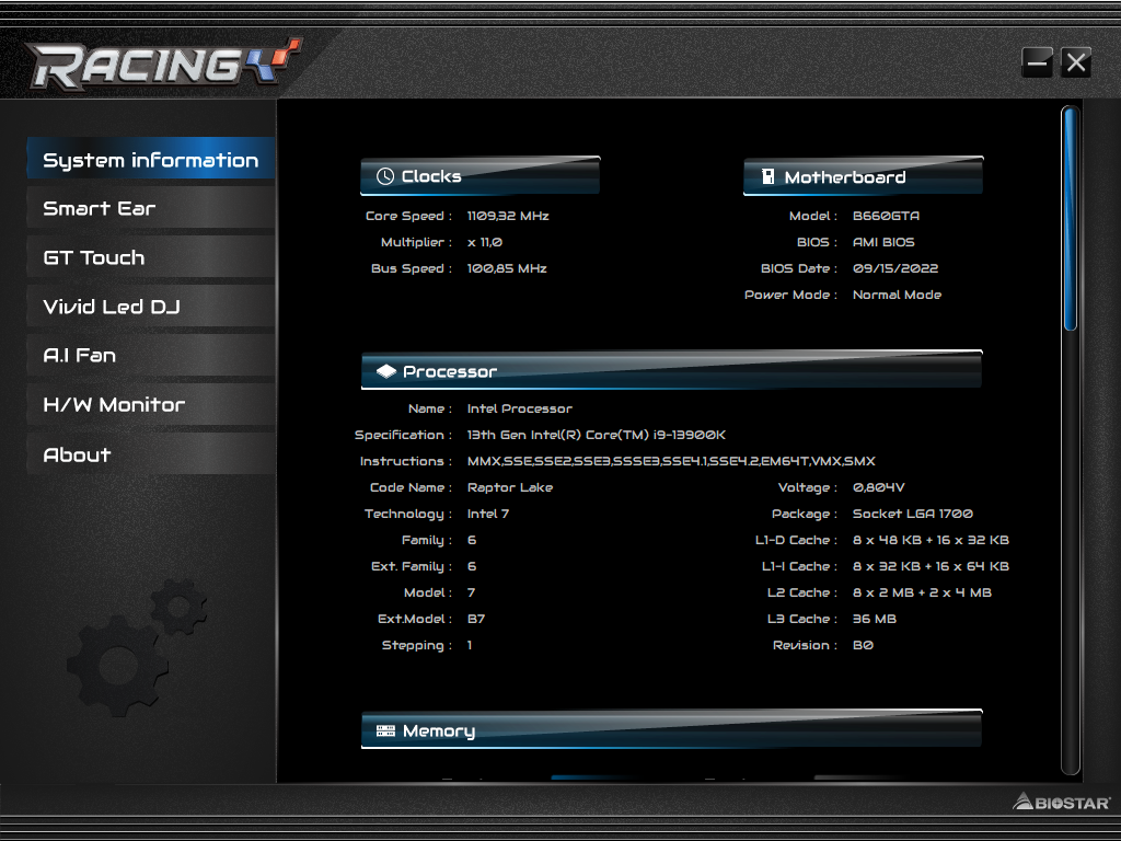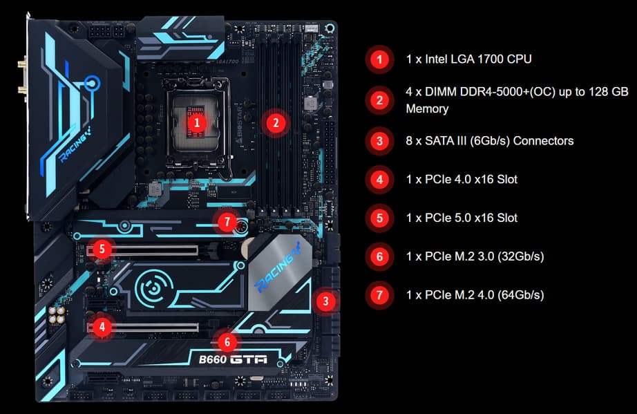 Biostar B660GTA Racing поддерживает процессоры Intel Core 12/13-го поколений, выполненные под разъем (сокет) LGA1700.