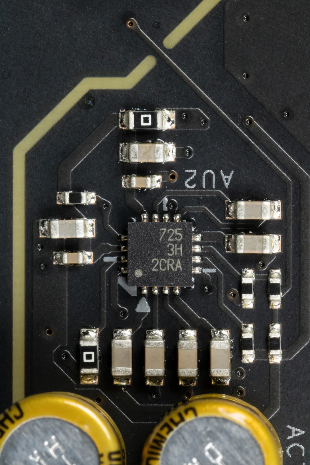 В аудиоцепях платы применяются «аудиофильские» конденсаторы Nichicon Fine Gold.