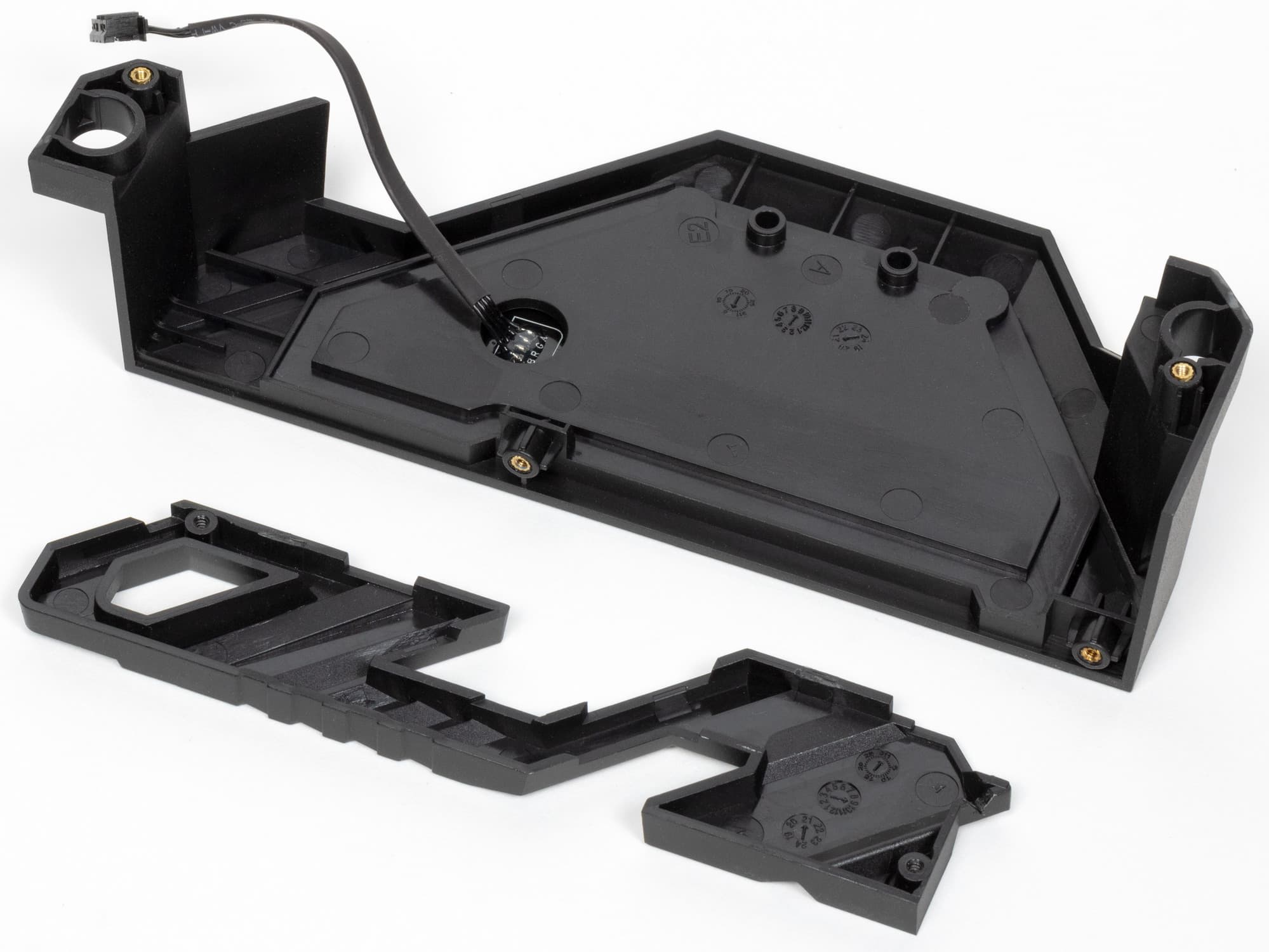 Заглушка, традиционно надеваемая на заднюю панель, в данном случае уже надета, и изнутри экранирована для снижения электромагнитных помех.