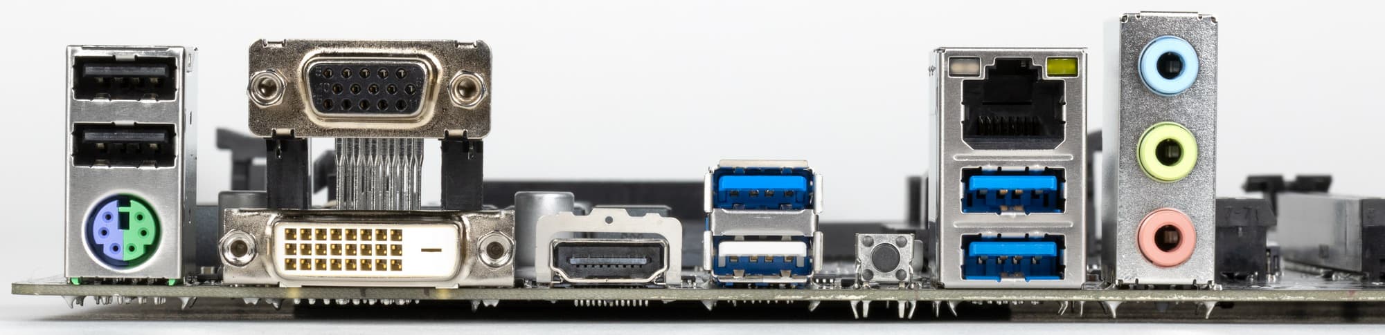 Теперь на очереди USB-порты и прочие вводы-выводы. И начнем с задней панели, куда выведены большинство из них.