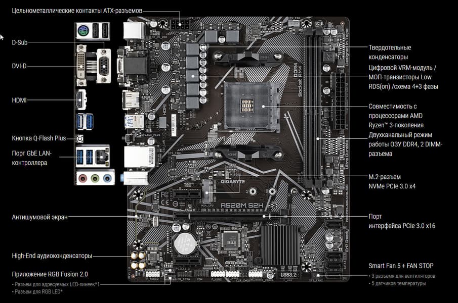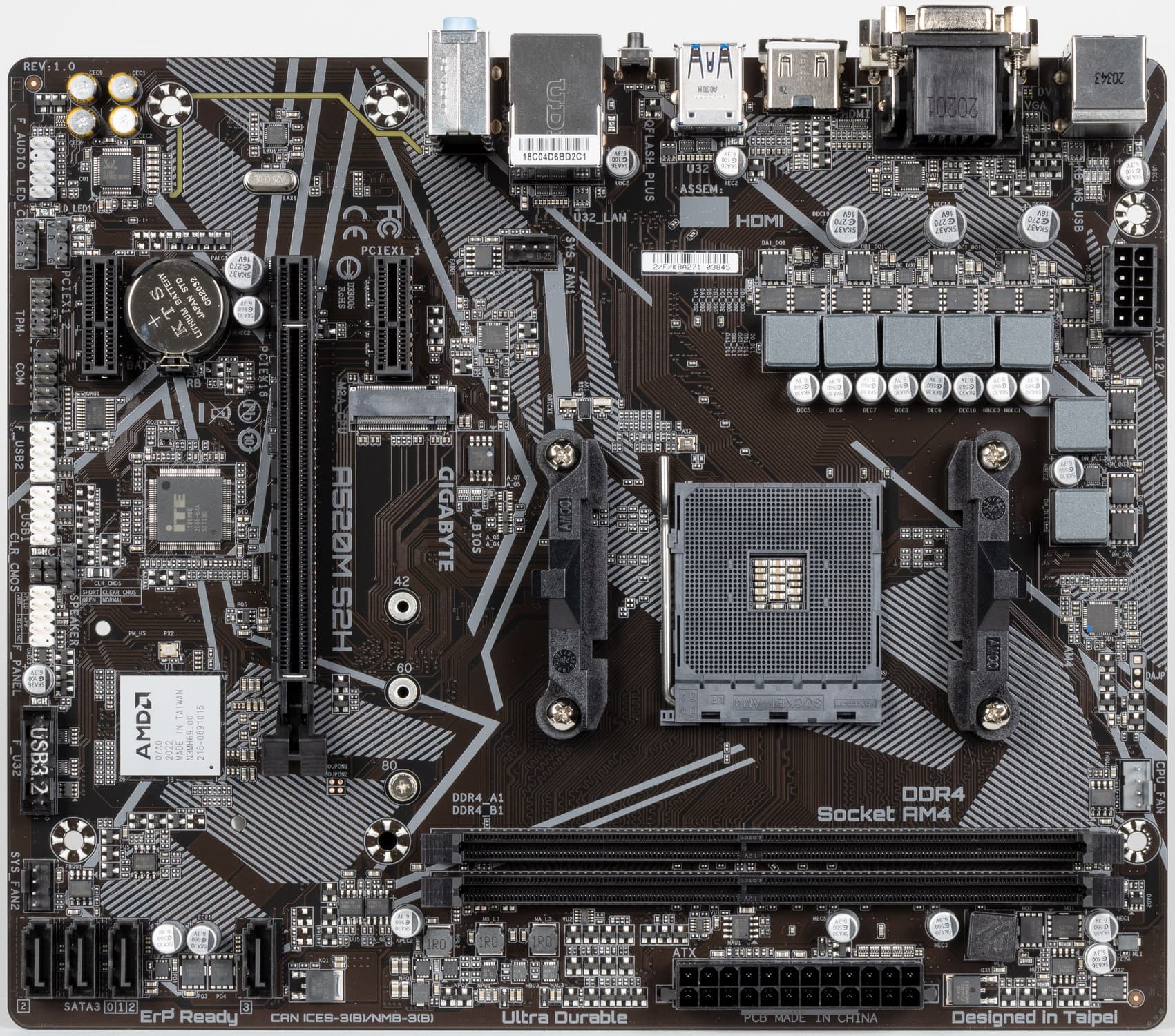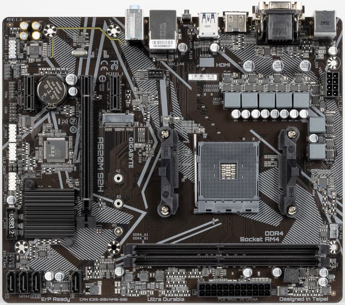 У нас сегодня Gigabyte A520M-S2H. Данный вариант даже без серии, просто плата на А520.