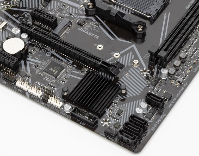 Для установки модулей памяти на плате Gigabyte имеется 2 DIMM-слота. Плата поддерживает небуферизованную память DDR4 (non-EСС), а максимальный объем памяти составляет 64 ГБ. Поддерживаются профили XMP.