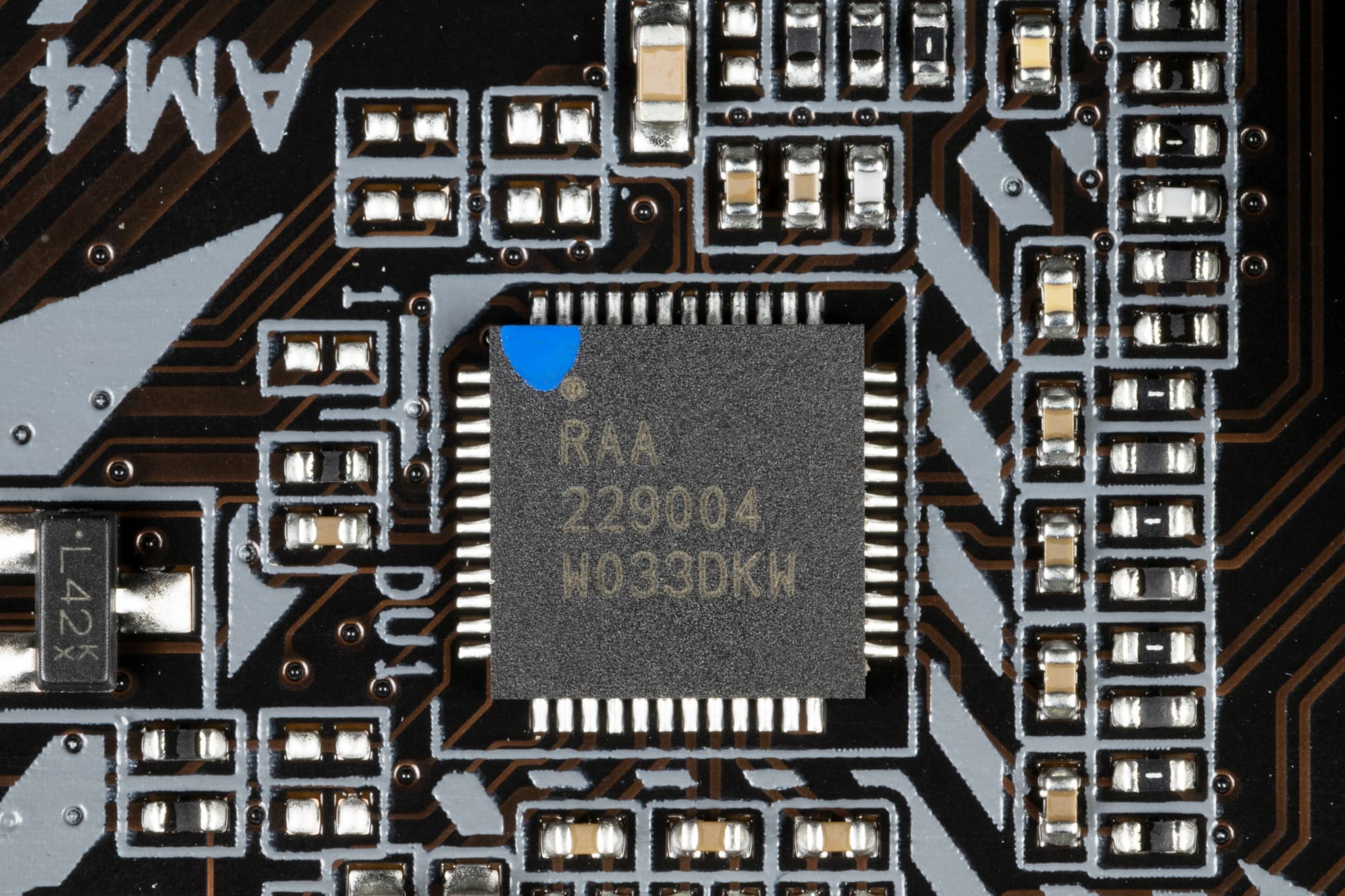 Управляет схемой питания восьмифазный ШИМ-контроллер Renesas RAA229004.