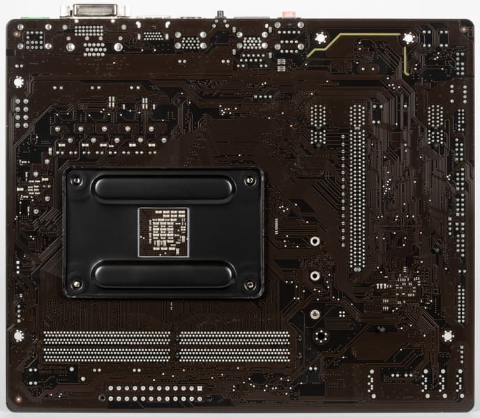 Оборотная сторона — практически пустая. Текстолит обработан хорошо: во всех точках пайки острые концы срезаны. «Заглушка» на заднюю панель с разъемами идет в комплекте отдельно.