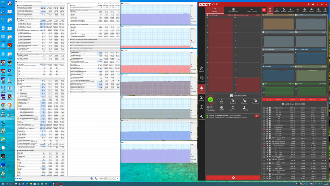 Хорошо видно, что, несмотря на относительную слабость системы питания у платы, мы смогли легко получить авторазгон Ryzen 5 Pro 4650 до 4,1 ГГц по всем ядрам. И это при стрессовой нагрузке теста, которой в жизни практически не бывает. Конечно, что повышение с 3.7 ГГц до 4.1 ГГц кому-то покажется малозначимым повышением частоты, однако подчеркну, что мы имеем дело с одной из самых простых на сегодня материнских плат! За ее стоимость это очень неплохой показатель! Да и, кстати, нагрев VRM был еще в норме, учитывая, что все силовые преобразователи вообще без охлаждения.