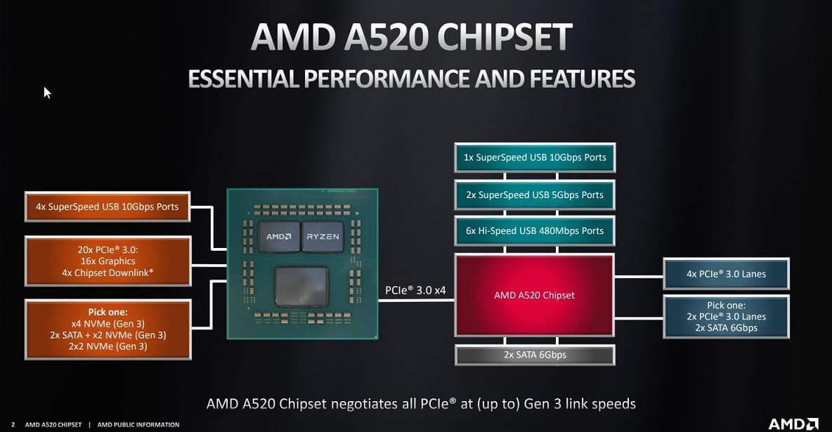 Следует учитывать, что кроме USB портов, предоставляемых чипсетами, сами процессоры Ryzen 3xxx/5xxx имеют встроенную поддержку 4х портов USB 3.2 Gen2, а также имеют 4 линии PCIe 4.0 (в случае с А520 они становятся 3.0) для накопителя М.2.