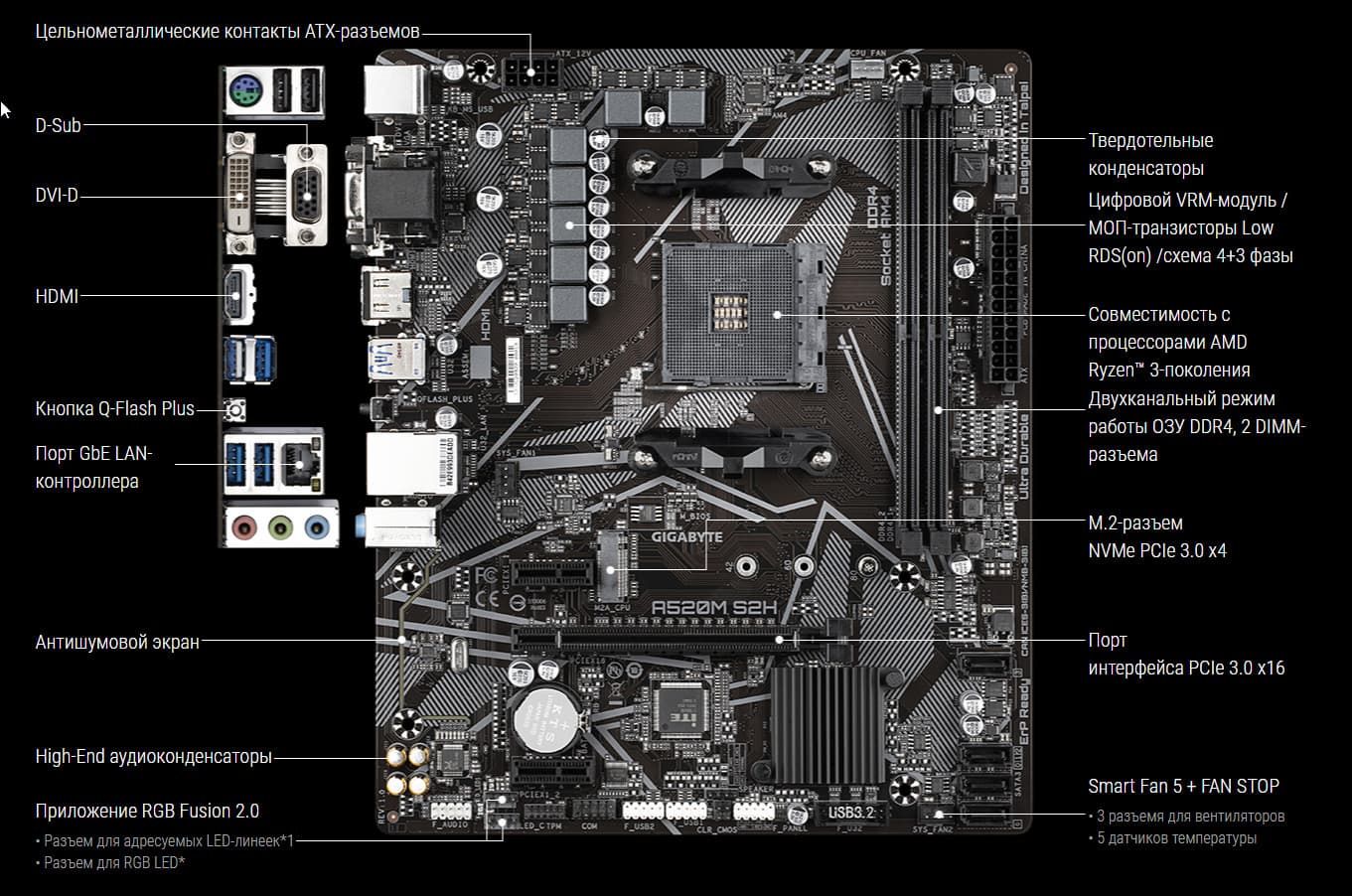 Материнская плата Gigabyte A520M-S2H ориентирована на самых нетребовательных пользователей, которые хотят получить бюджетное решение для дешевого ПК. Данная модель форм-фактора microATX обеспечивает достаточное питание для приличного авторазгона процессоров среднего уровня (именно автоматического разгона, без вмешательства пользователя).
