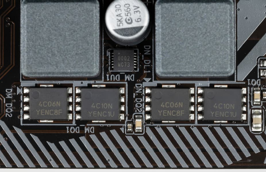 Каждый канал фазы имеет суперферритовый дроссель и набор полевых транзисторов NTMFS4xxx от On Semi (до 69А).