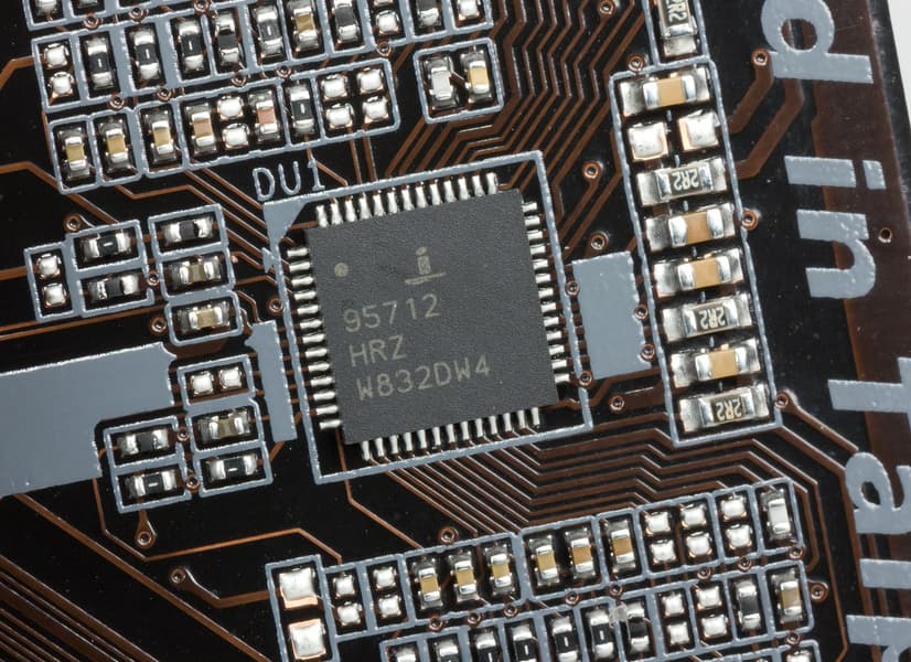 В отличие от дорогих материнских плат, звуком в данном случае заведует не Realtek ALC1220, а Realtek ALC887. Впрочем, для пользователя разница между этими решениями минимальна. Аудиокодек обеспечивает вывод звука по схемам до 5.1.