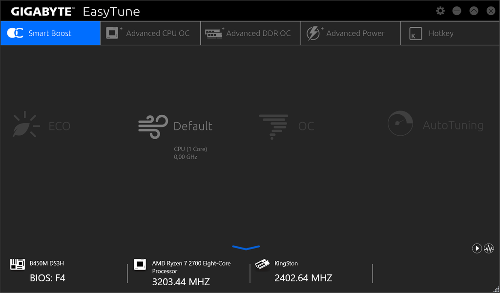 Утилита позволяет осуществлять разгон (поднятие частот, напряжений и пр.) прямо из Windows, не погружаясь в программу настройки BIOS материнской платы. Учитывая бюджетность данной платы и отсутствие нацеленности на разгон, предустановленных вариантов очень мало.