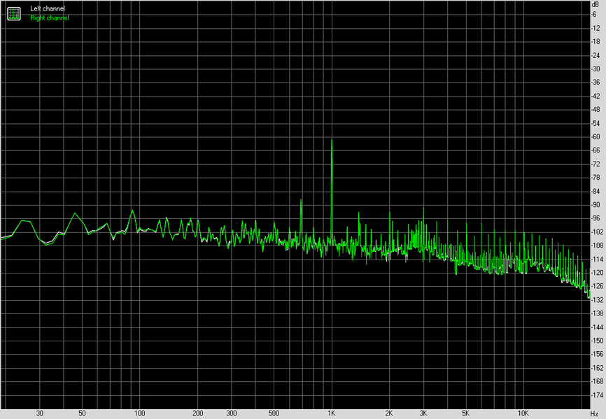 Для тестирования выходного звукового тракта, предназначенного для подключения наушников или внешней акустики, мы использовали внешнюю звуковую карту Creative E-MU 0202 USB в сочетании с утилитой RightMark Audio Analyzer 6.4.5. Тестирование проводилось для режима стерео, 24-бит/44,1 кГц. По результатам тестирования аудиотракт на плате получил оценку «Хорошо».