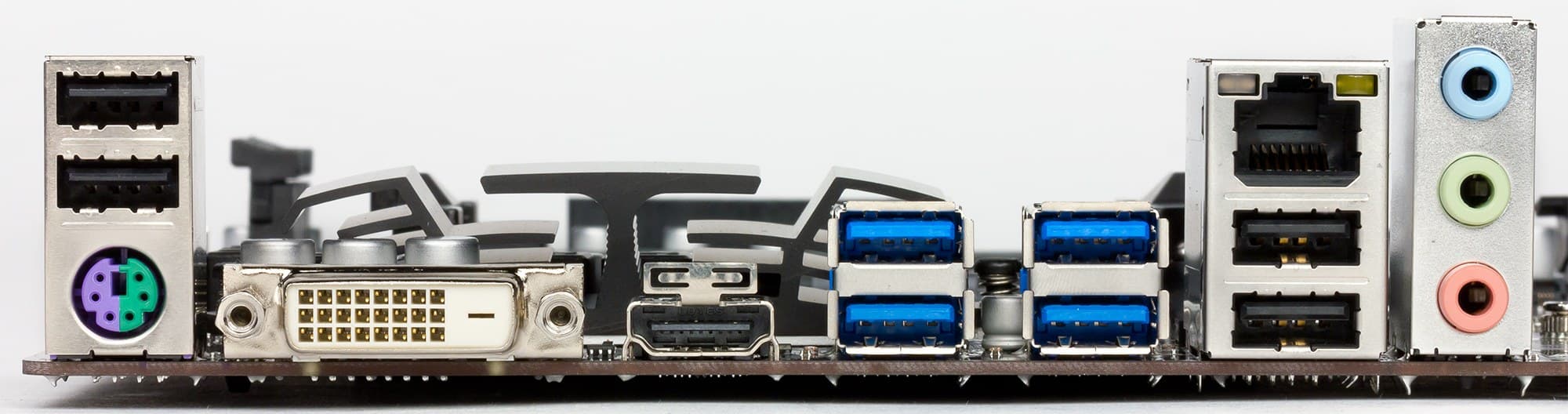 | Разъемы на задней панели | 4 × USB 3.0 (Type-A) 4 × USB 2.0 (Type-A) 1 × RJ-45 1 × PS/2 3 аудиоразъема типа миниджек 1 × HDMI 1.4 1 × DVI-D |
