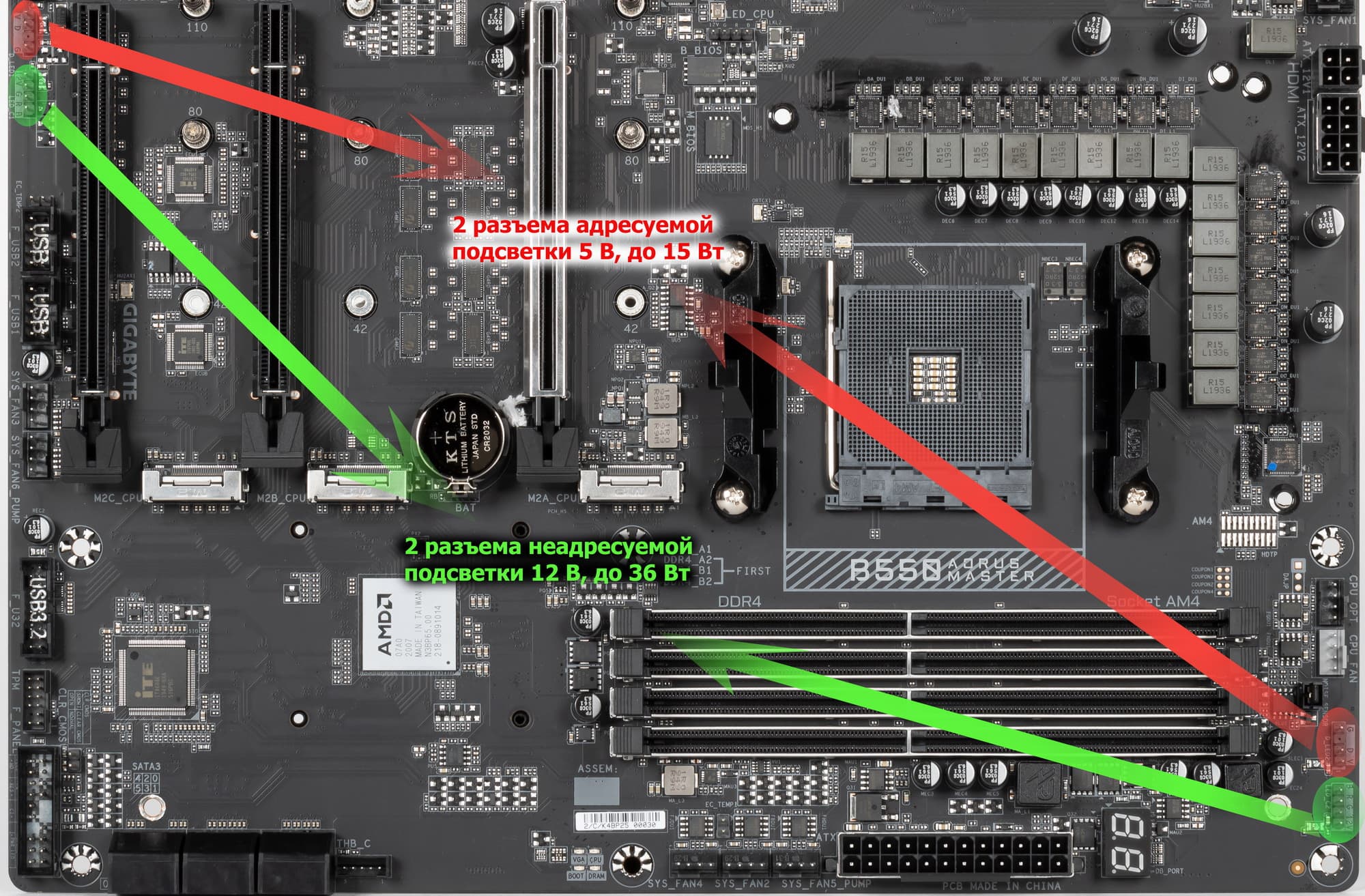 Схемы подключения стандартны для всех материнских плат, поддерживающих подсветку: