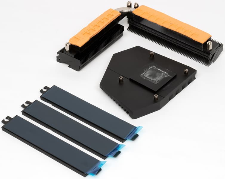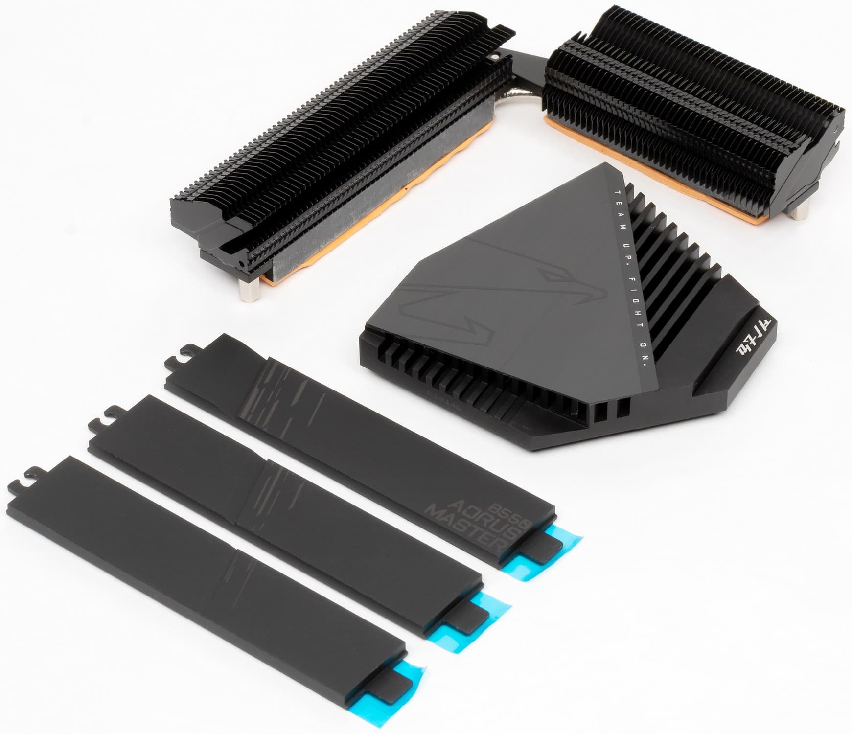 Все три M.2 слота имеют собственные раздельные радиаторы, которые не связаны с какими-то иными устройствами охлаждения на данной плате.