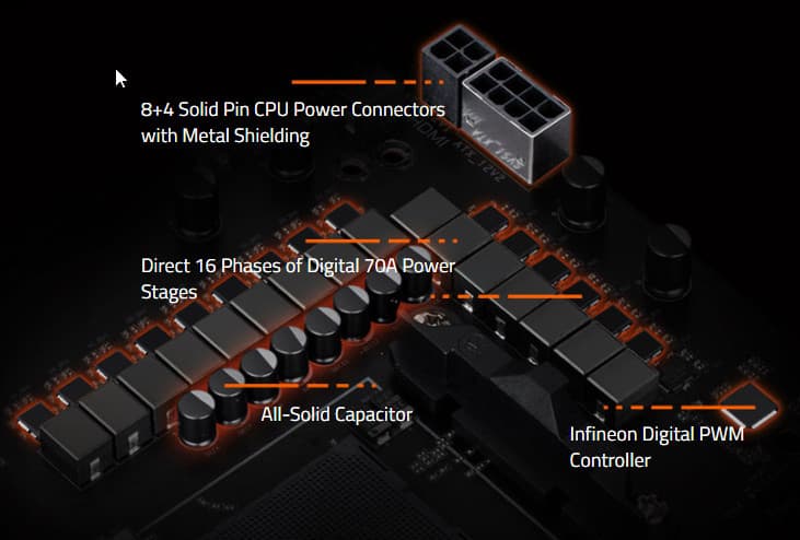 Система питания очень даже хороша для среднебюджетного уровня матплаты: 16 фазная схема.