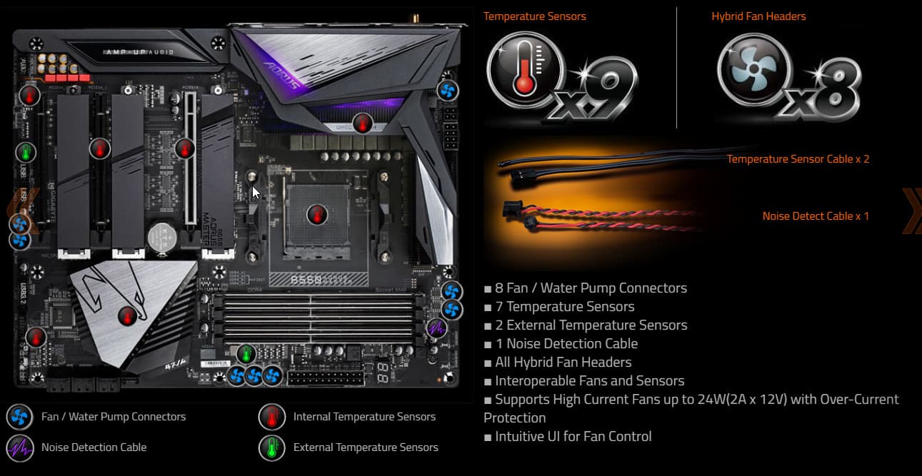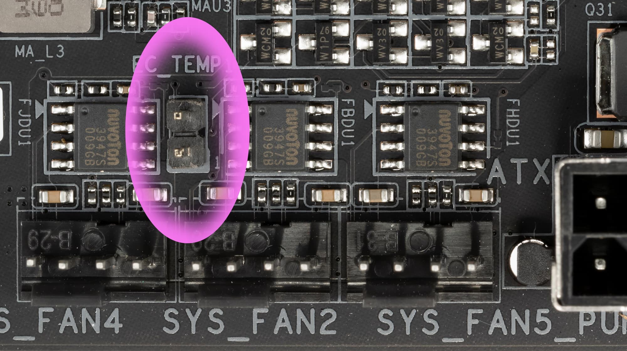 Через ПО или BIOS контролируется все 8 гнезд для подключения воздушных вентиляторов или помп: они могут управляться как через ШИМ, так и банальным изменением напряжения/тока.