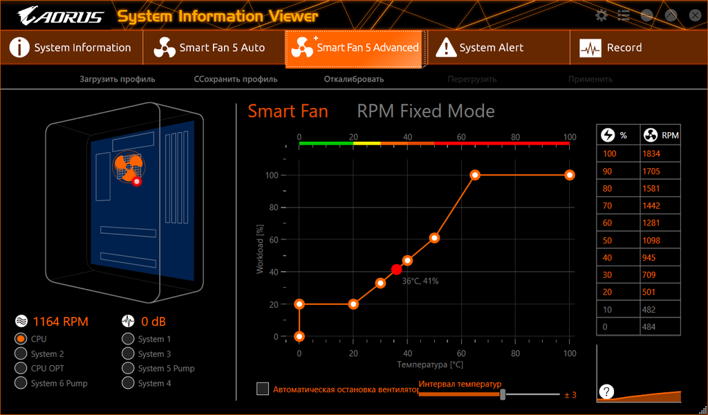 Для полноценной работы утилиты автонастроек вентиляторов имеется 2 датчика шума: один встроенный и второй в виде разъема для подключения внешнего датчика, имеющегося в комплекте поставки.