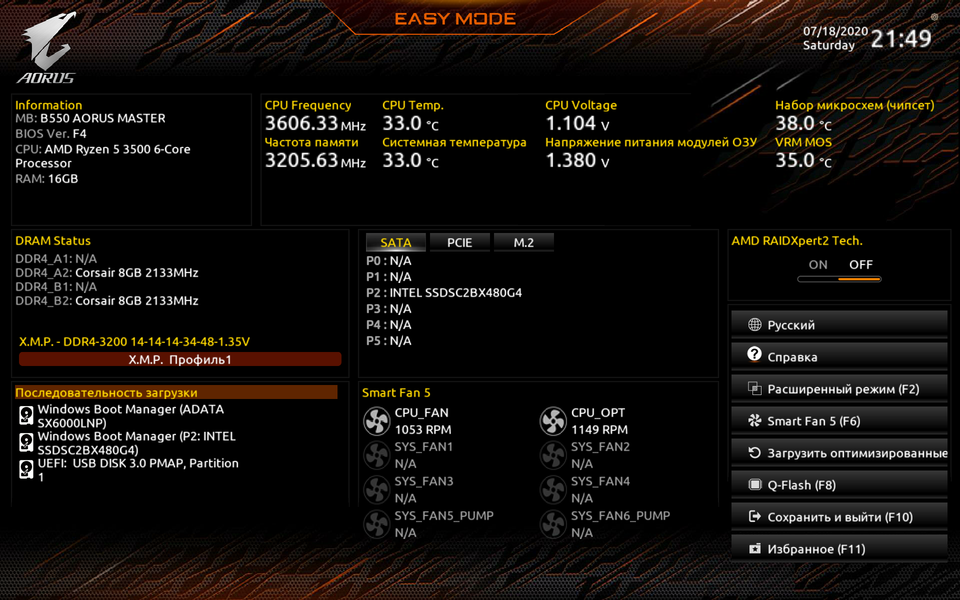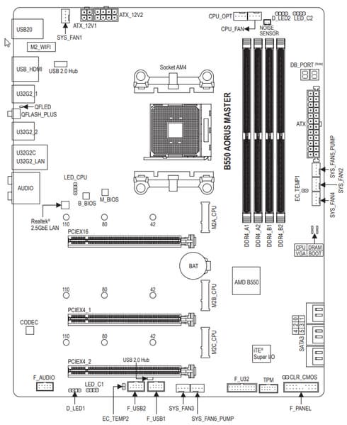 | Разъемы для накопителей | 6 × SATA 6 Гбит/с (B550) 1 × M.2 (CPU, PCIe 4.0 x4/SATA для устройств формата 2242/2280/22110) 2 × M.2 (CPU, PCIe 4.0 x4 для устройств формата 2242/2280/22110) |