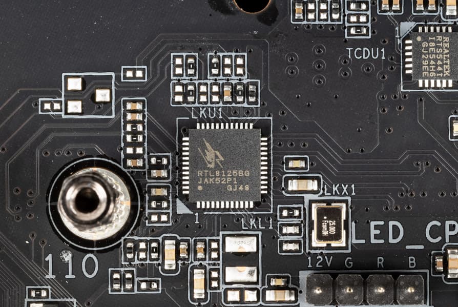 Материнская плата оснащена средствами связи скромно, однако быстро :). Имеется скоростной Ethernet-контроллер Realtek RTL8125BG, способный работать по стандарту 2,5 Гбит/с.