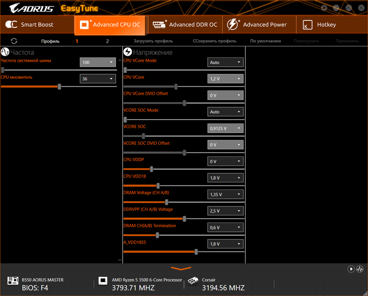 И в который раз надо повторить: технологии авторазгона AMD тщательно «щупают» систему питания и выставляют максимально возможные частоты работы только на схемах питания премиального уровня, так что под разгон надо приобретать плату серьезного уровня (и, скорее всего, забыть в этом плане про В550, довольствуясь скромным авторазгоном).