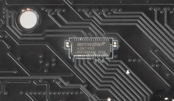 Также необходимо переключение слота PCIe x4_2 и портов SATA 4/5, для этих целей используется мультиплексор ASM1480 от ASMedia (он расположен на оборотной стороне PCB).