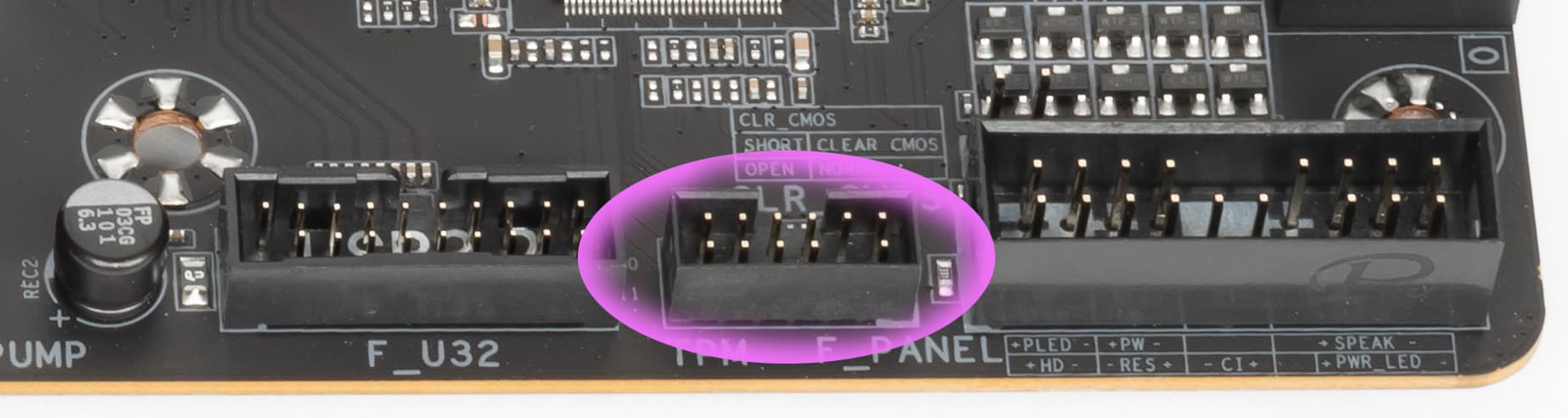 Материнская плата имеет отдельный разъем для подключения платы расширения Thunderbolt и разъем для систем безопасности TPM.