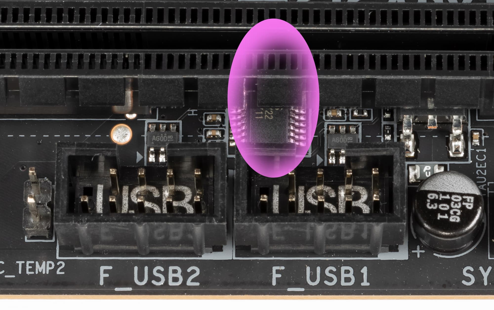 Все быстрые USB порты Type-A/Type-C имеют свои усилители сигнала NB7N от On Semi.