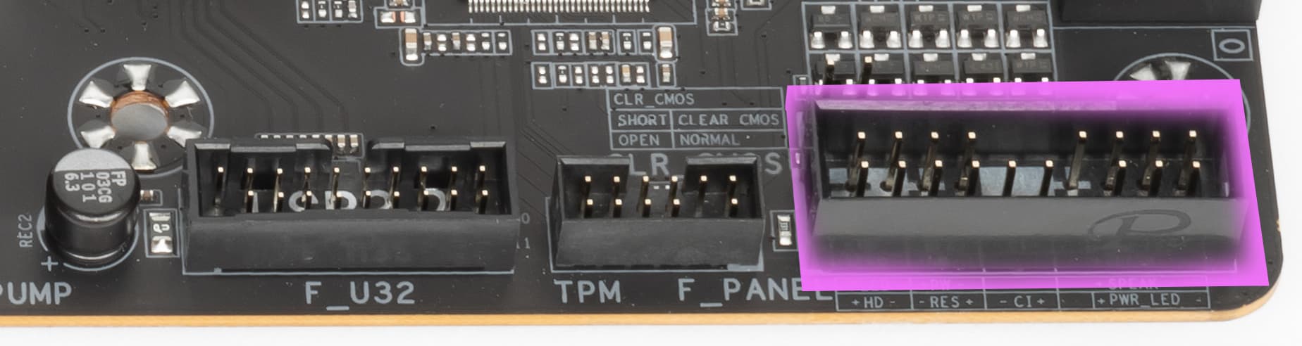 Есть и традиционный набор штырьков FPanel для подключения проводов к передней (а сейчас уже часто и верхней или боковой или все это сразу) панели корпуса.
