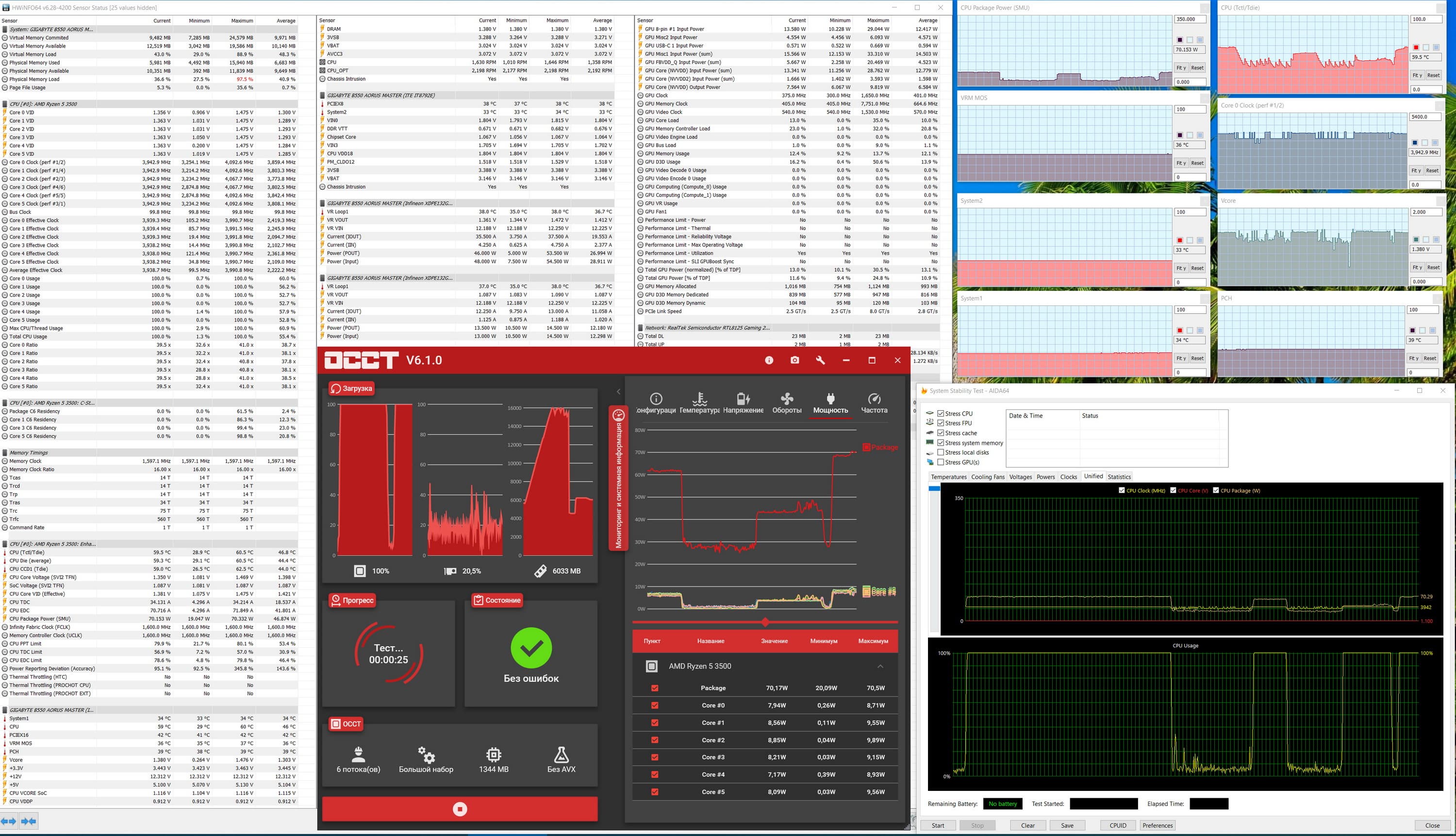 Запускаем все в режиме по умолчанию. Затем нагружаем тестами от AIDA, и OCCT.