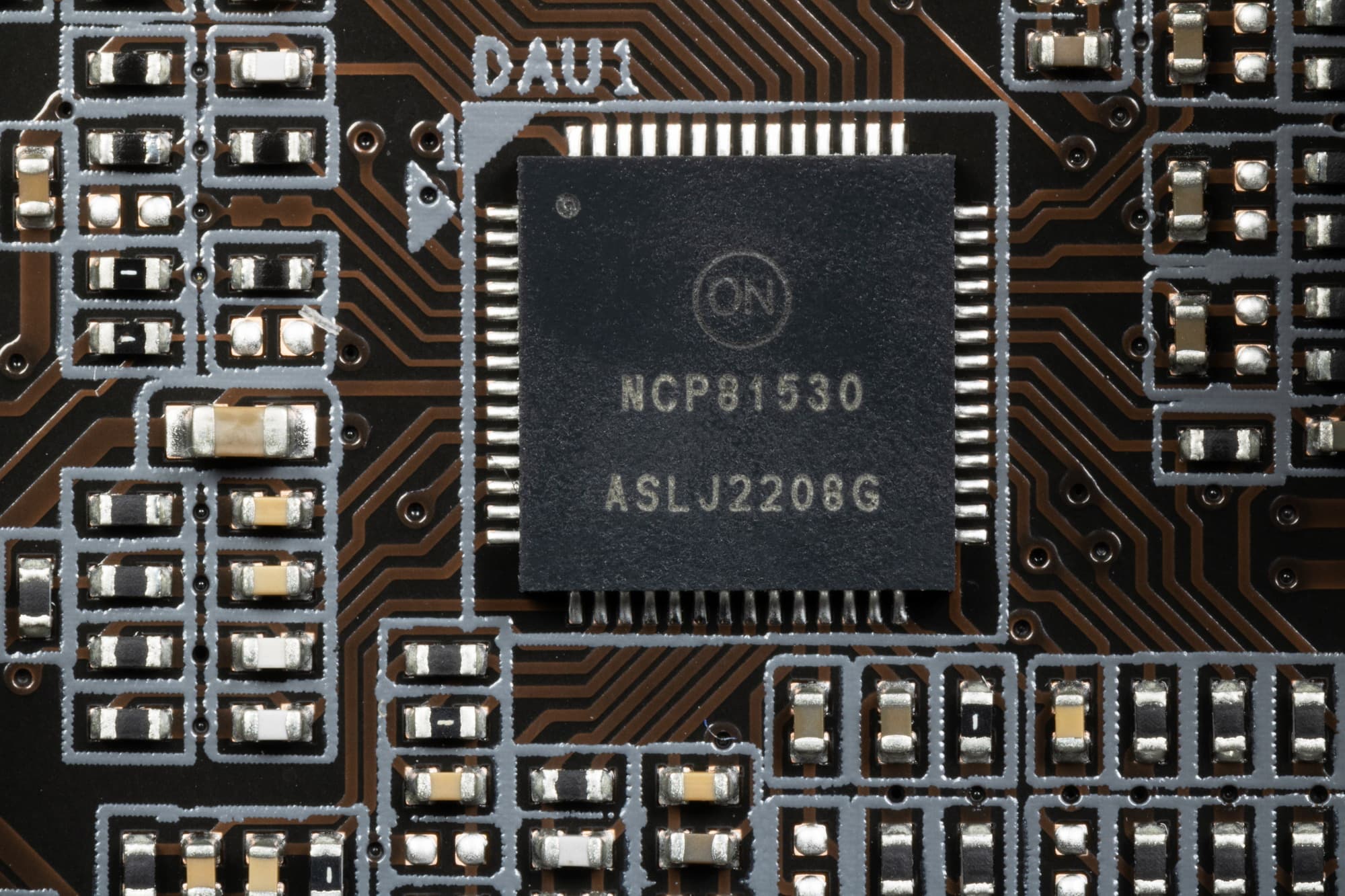 Управляет схемой питания VCore, VCCIO и iGPU ШИМ-контроллер NCP81530 от On Semi, рассчитанный максимум на 10 фаз.