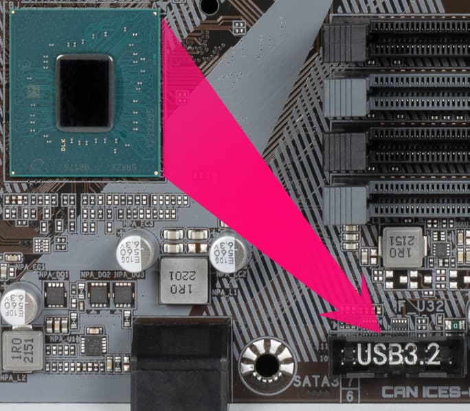 Повторим: чипсет B660 способен реализовать не более 12 портов USB, из которых может быть до 6 портов USB 3.2 Gen1, до 4 портов USB 3.2 Gen2, до 2 портов USB 3.2 Gen2x2, и/или до 12 портов USB 2.0.