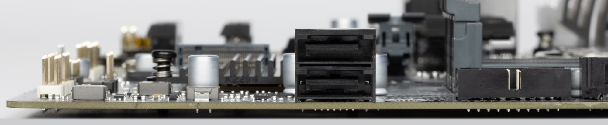 Всего у платы 4 разъема Serial ATA 6 Гбит/с + 2 слота для накопителей в форм-факторе M.2.