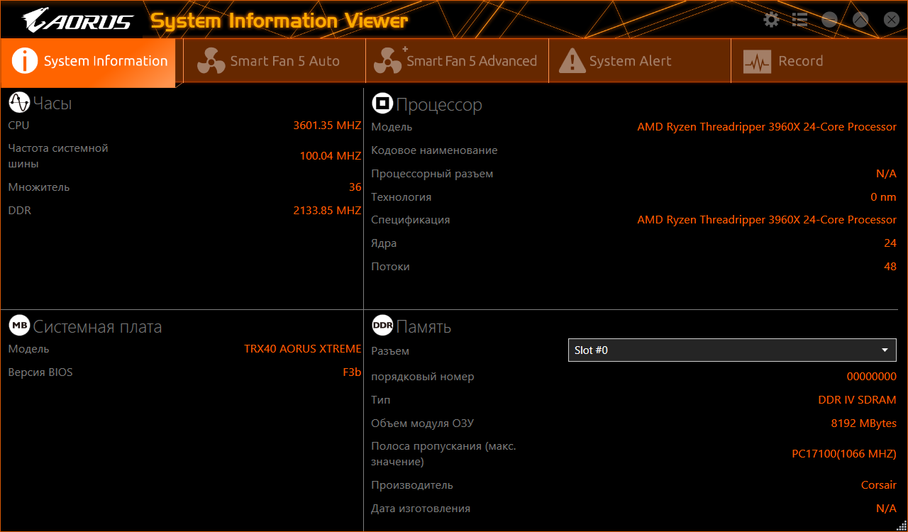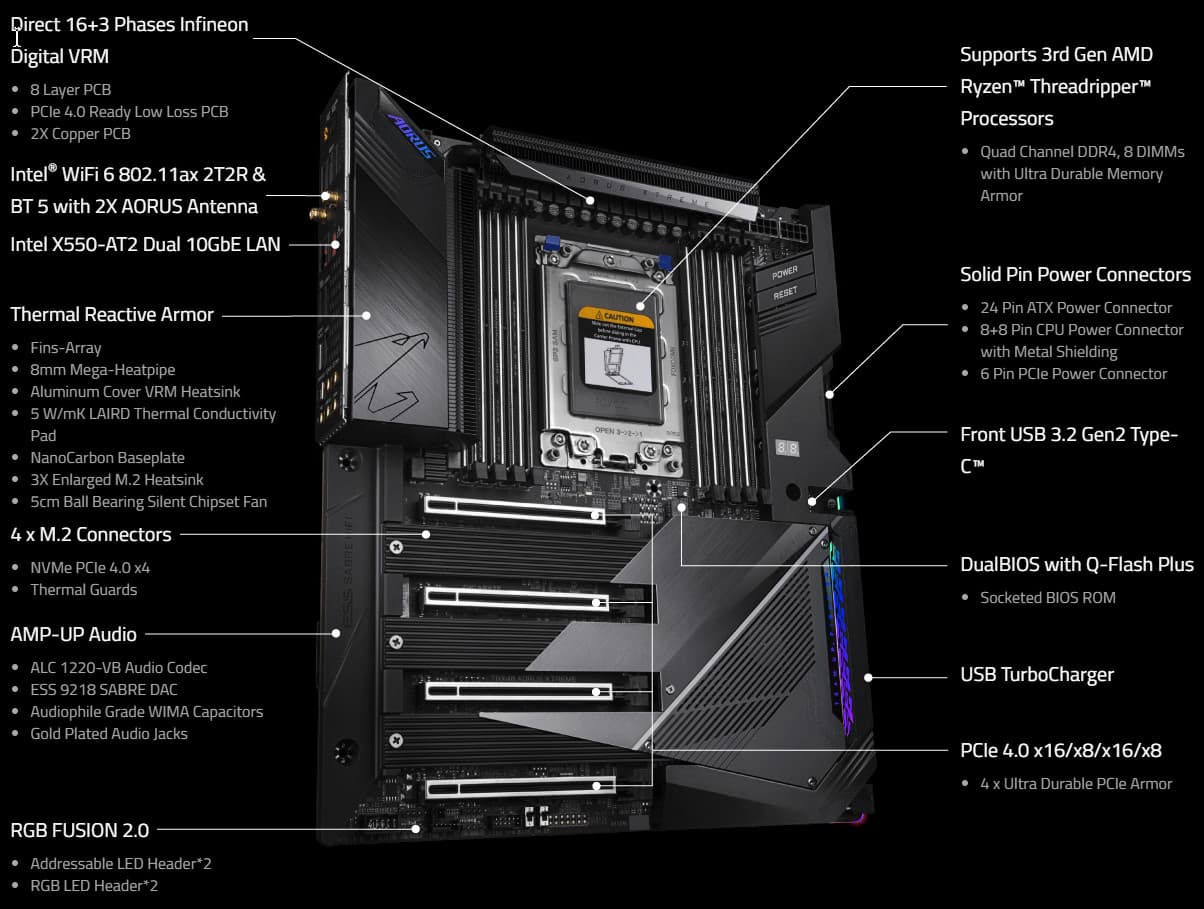 - материнская плата Gigabyte TRX40 Aorus Xtreme;