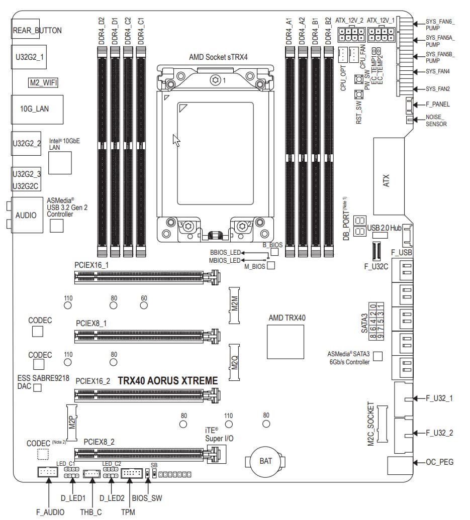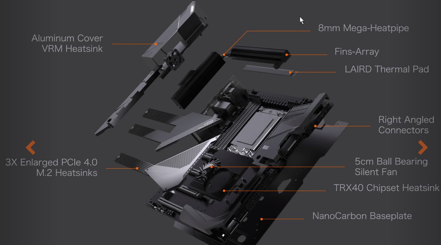 Выше мы изучили потенциальные возможности тандема TRX40+Ryzen Threadripper 3xxx, а теперь посмотрим, что из этого и как реализовано в данной материнской плате.