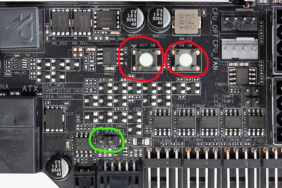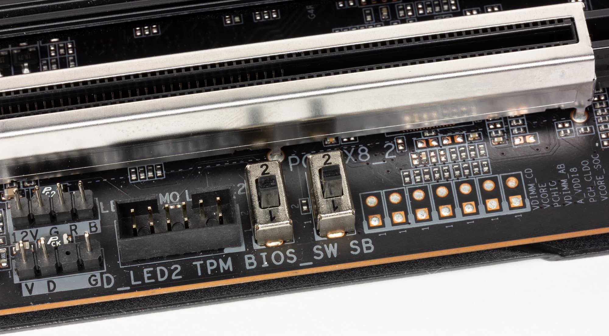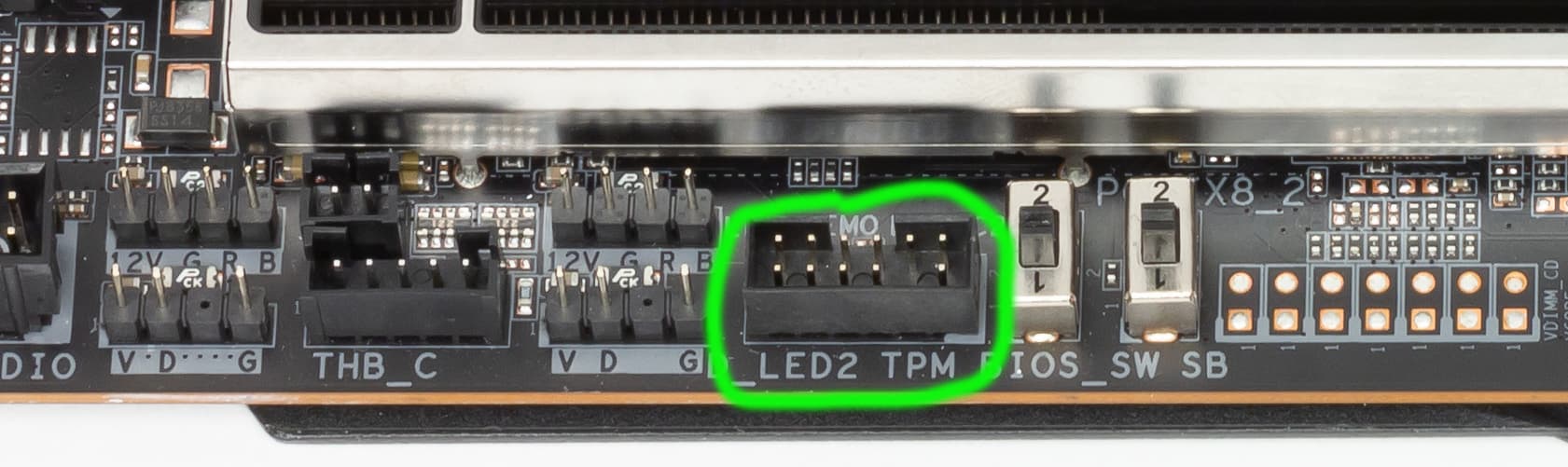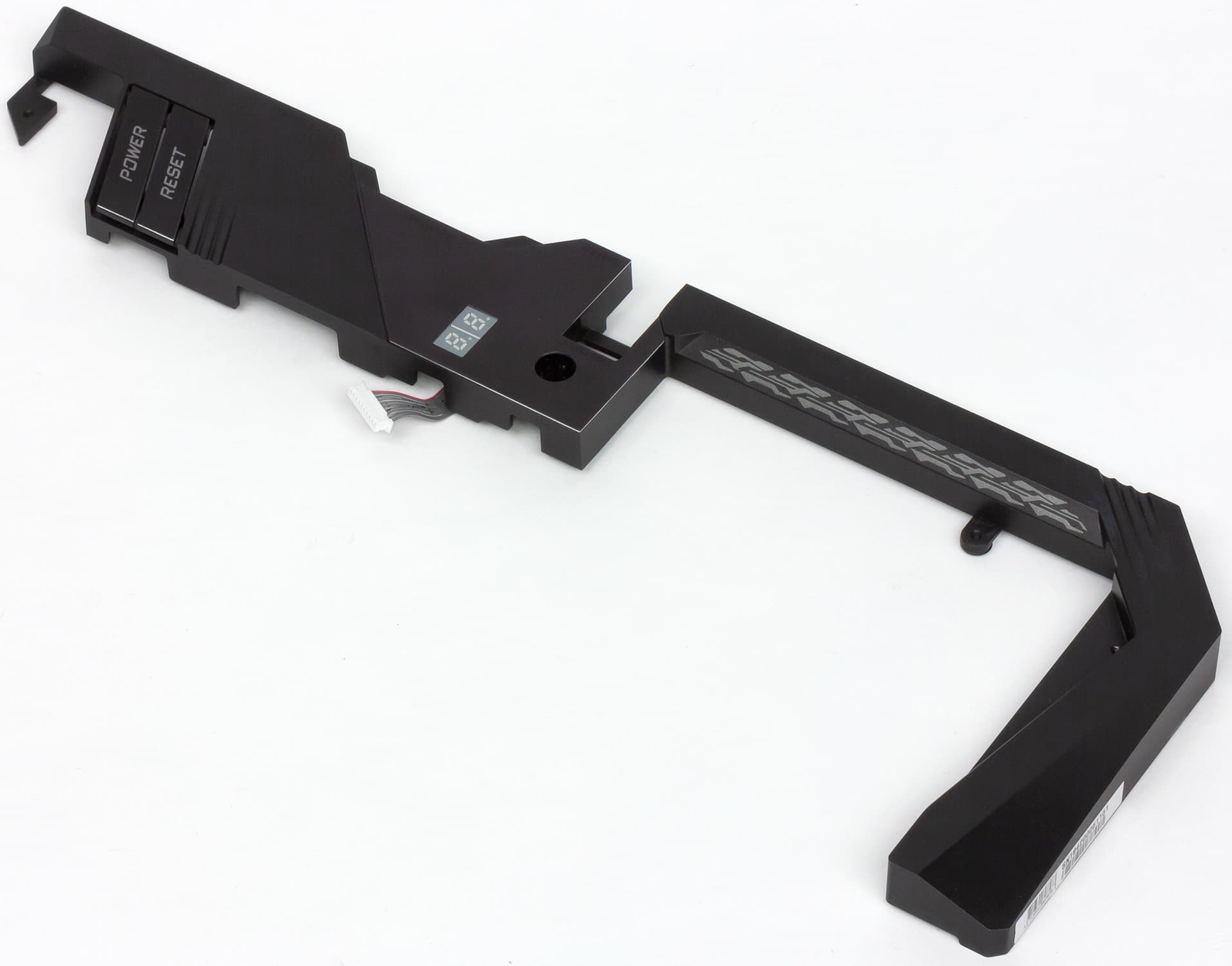 | Прочие внутренние элементы | 24-контактный разъем питания ATX 2 8-контактных разъема питания EPS12V 1 слот M.2 (E-key), занят адаптером беспроводных сетей 1 разъем для подключения порта USB 3.2 Gen2 Type-C 2 разъема для подключения 4 портов USB 3.2 Gen1 1 разъем для подключения 4 портов USB 2.0 (через адаптер-разветвитель) 7 разъемов для подключения 4-контактных вентиляторов (поддержка помп ЖСО) 2 разъема для подключения неадресуемой RGB-ленты 2 разъема для подключения адресуемой ARGB-ленты 1 разъем для детектора шума 1 разъем аудио для передней панели корпуса 1 разъем TPM 1 разъем для подключения управления с передней панели корпуса (через адаптер-удлинитель) 1 кнопка включения питания (Power) 1 кнопка перезагрузки (Reset) 2 разъема для подключения термодатчиков 2 переключателя режимов BIOS точки для измерения напряжений |