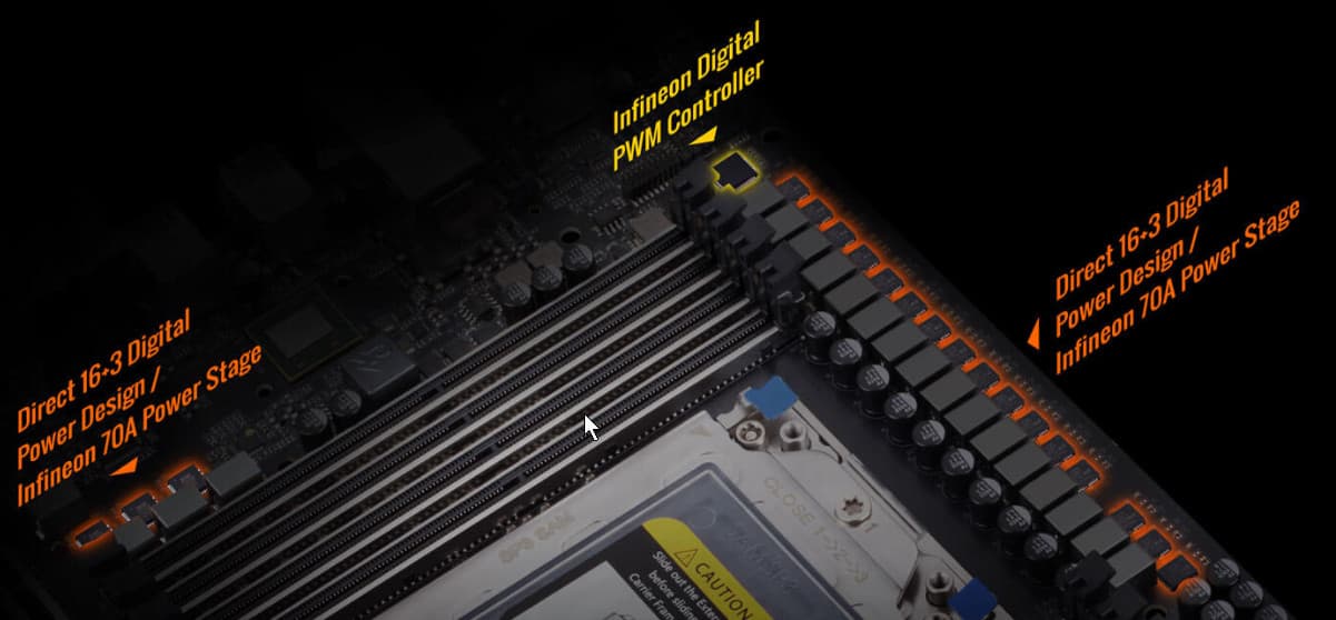 В целом надо сказать, что система питания колоссально мощная, понятно, что уровень HEDT того требует, однако здесь налицо большой запас прочности и стабильности (мы знаем, что Ryzen Threadripper потребляют очень много, поэтому требования к схеме питания очень высокие).