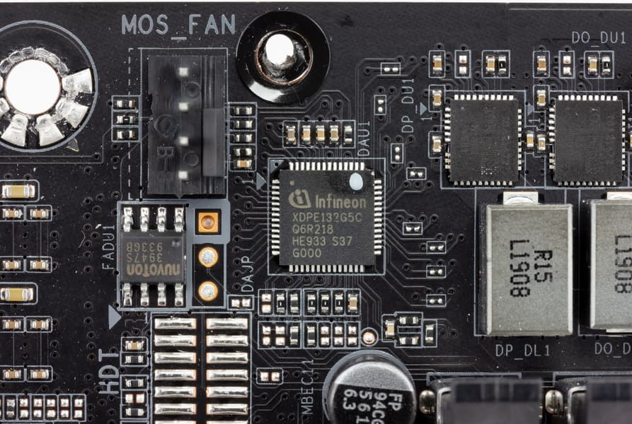 Мы видим честную фазовую схему без удвоителей фаз. Управляет фазами цифровой контроллер XDPE132Q5C компании Infineon, рассчитанный именно на работу с 16 фазами.