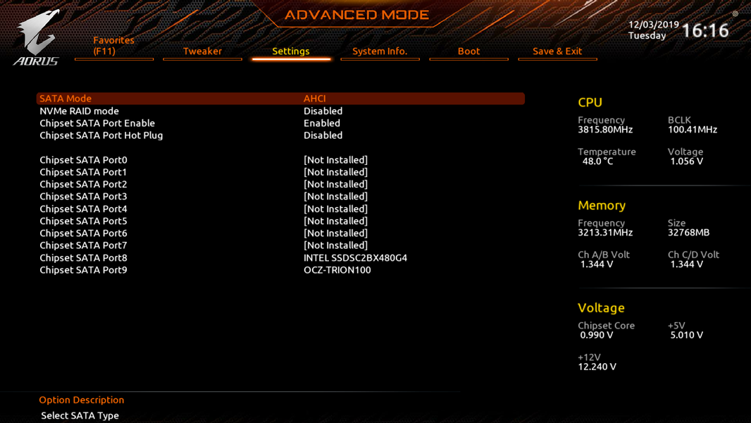 Плюс штатно положенные 4 порта SATA (0—3). Собственно, все 16 линий PCI-E оказались заняты.
