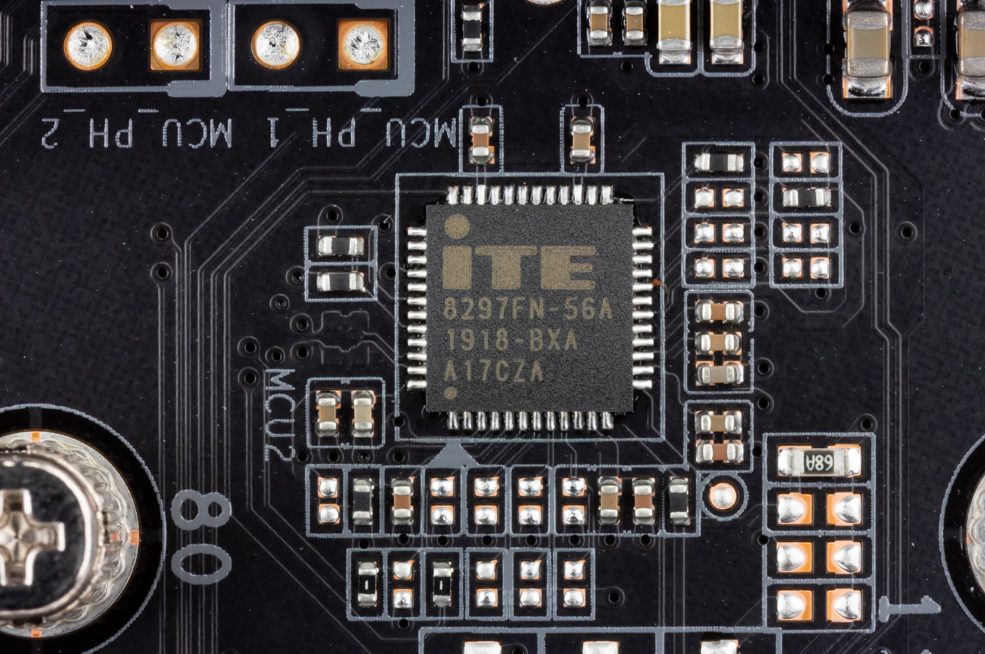 а второй контроллер IT8297FN занимается мониторингом (первый, мы помним, отвечает за подсветку). В итоге мы имеем возможность слежения за всеми подключенными вентиляторами и помпами, а также тонкую регулировку их работы.