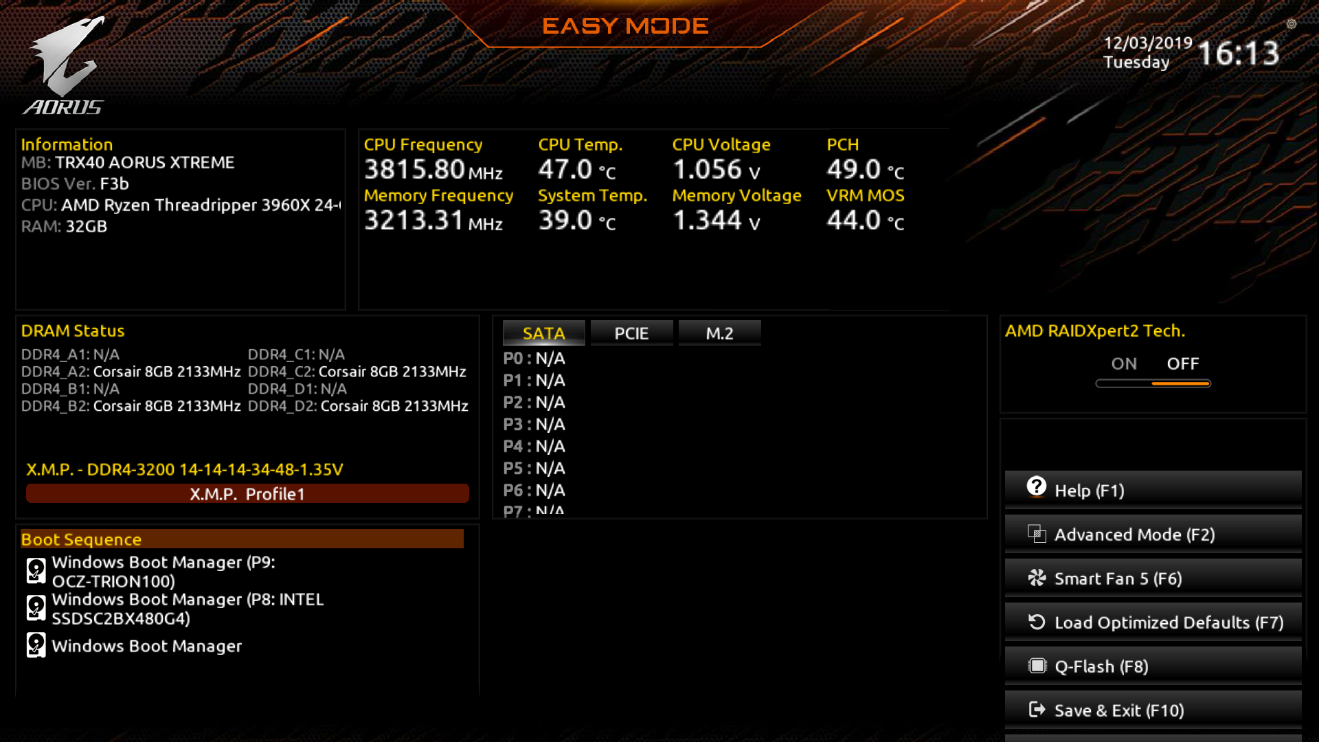 Стоит отметить, что оба вентилятора (на радиаторе от TRX40 и на радиаторе у задней панели) не доставляют дискомфорта. Хоть чипсетный и достигал 1950 оборотов в минуту, но шума особо не было слышно, да частенько он выключался. А вентилятор на «заднем» радиаторе вообще практически не включался (он настроен на пороговые температуры нагрева около 65 °C).