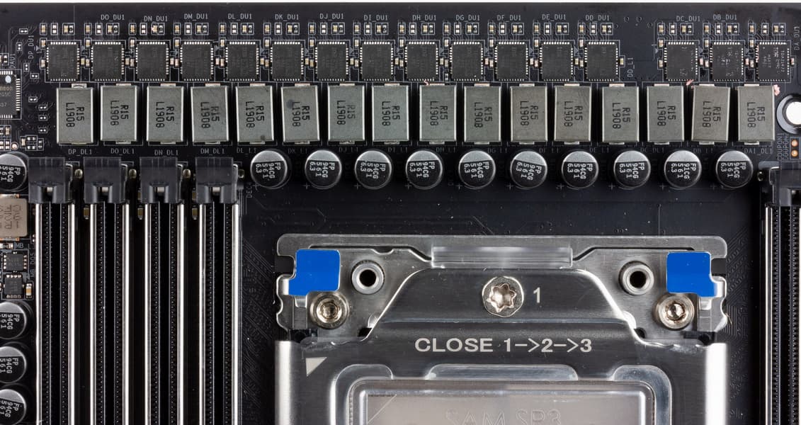 То есть суммарно система питания способна пропустить через себя колоссальную нагрузку (хватит на 4 самых мощных «тредриппера»). С одной стороны кажется, что это дает огромный потенциал для оверклокинга, с другой стороны мы помним, что разгон резко ограничен со стороны AMD термопакетом (об этом ниже). В общем, такая система питания дает огромный запас стабильности.