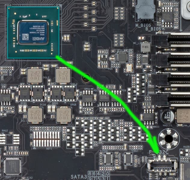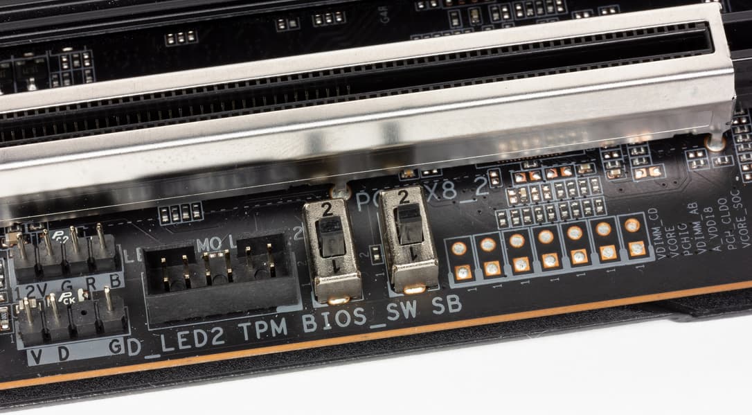- Переключатель: или 4 порта SATA (4—7) (4 линии), или M.2 (M2C) (4 линии): максимум 4 линии;